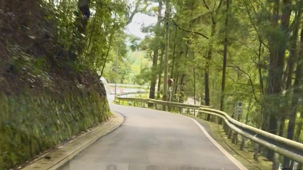 とにかく山道が長い。カーブも多く、すれ違いもギリギリ。