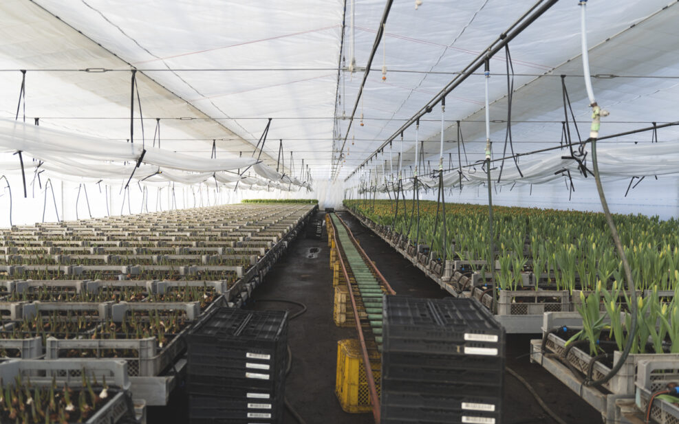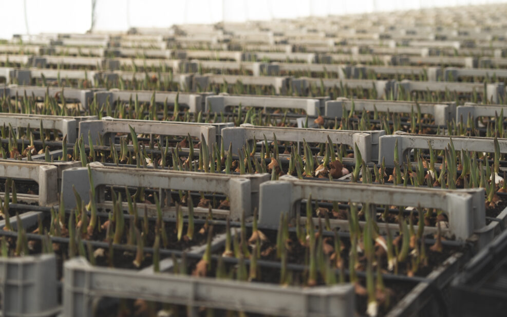 こちらのハウスには、まだ咲ききっていない花や、芽を出し始めた球根が静かに並ぶ。