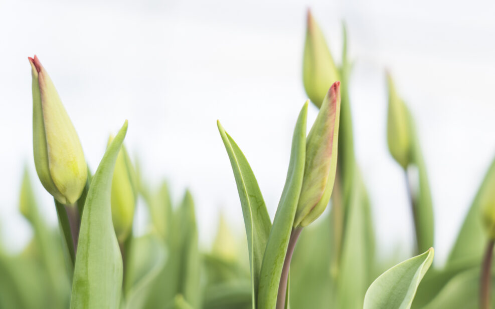 チューリップたちは、咲く前の時間を静かに過ごしているように見えた。