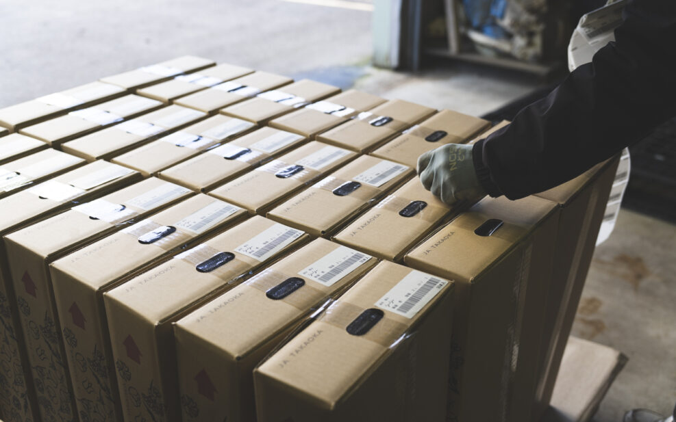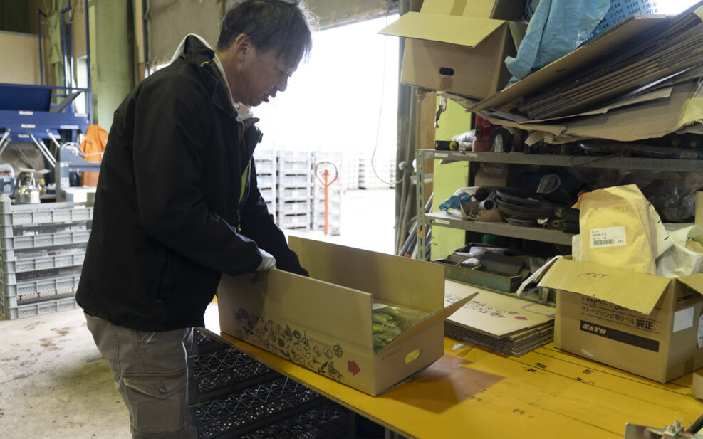 高岡市内で切花の需要が増えないと、ここにいながら高岡さんのちなかなか厳しそうだ。そんなお話を伺っていると、あっという間に箱詰めが進んでいた。